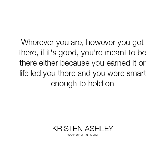 Wherever you are, however you got there, if it's good, you're meant to be there either because you earned it or life led you there and you were smart enough to hold on
