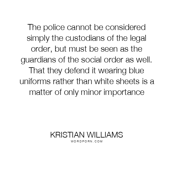 The police cannot be considered simply the custodians of the legal order, but must be seen as the guardians of the social order as well. That they defend it wearing blue uniforms rather than white sheets is a matter of only minor importance