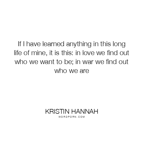 If I have learned anything in this long life of mine, it is this: in love we find out who we want to be; in war we find out who we are
