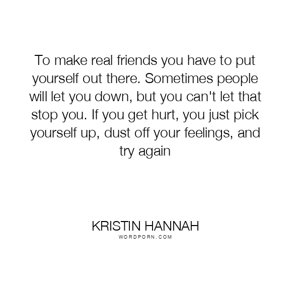 To make real friends you have to put yourself out there. Sometimes people will let you down, but you can't let that stop you. If you get hurt, you just pick yourself up, dust off your feelings, and try again