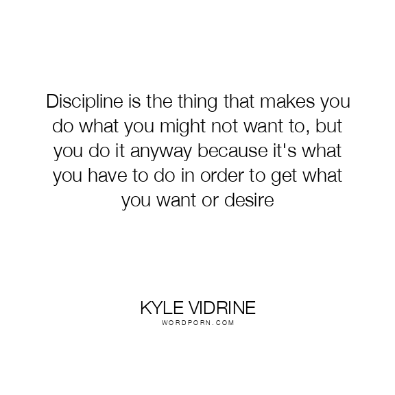 Discipline is the thing that makes you do what you might not want to, but you do it anyway because it's what you have to do in order to get what you want or desire