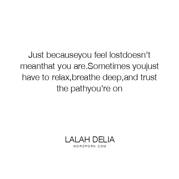 Just becauseyou feel lostdoesn't meanthat you are.Sometimes youjust have to relax,breathe deep,and trust the pathyou're on