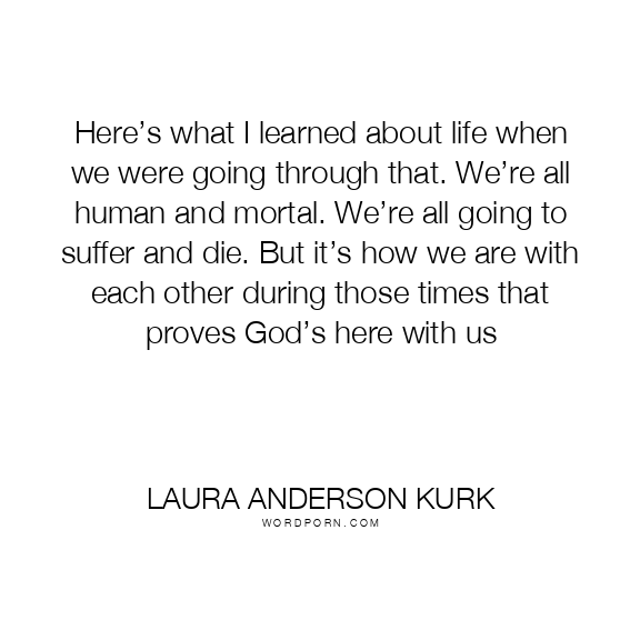 Here’s what I learned about life when we were going through that. We’re all human and mortal. We’re all going to suffer and die. But it’s how we are with each other during those times that proves God’s here with us
