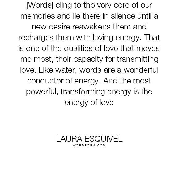 [Words] cling to the very core of our memories and lie there in silence until a new desire reawakens them and recharges them with loving energy. That is one of the qualities of love that moves me most, their capacity for transmitting love. Like water, words are a wonderful conductor of energy. And the most powerful, transforming energy is the energy of love