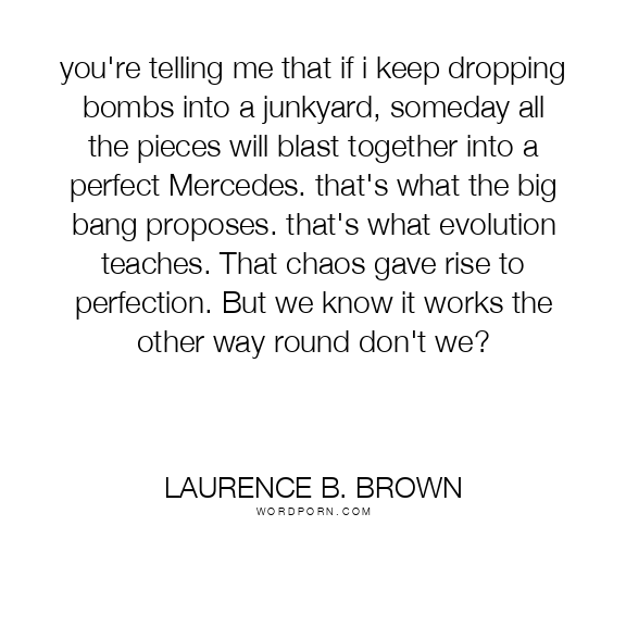 you're telling me that if i keep dropping bombs into a junkyard, someday all the pieces will blast together into a perfect Mercedes. that's what the big bang proposes. that's what evolution teaches. That chaos gave rise to perfection. But we know it works the other way round don't we?