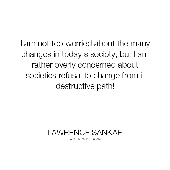 Copy Image I am not too worried about the many changes in today's society, but I am rather overly concerned about societies refusal to change from it destructive path! Moms Typewriter A A SAVE THIS IMAGE