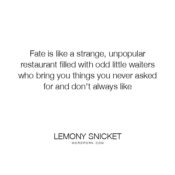 Fate is like a strange, unpopular restaurant filled with odd little waiters who bring you things you never asked for and don't always like