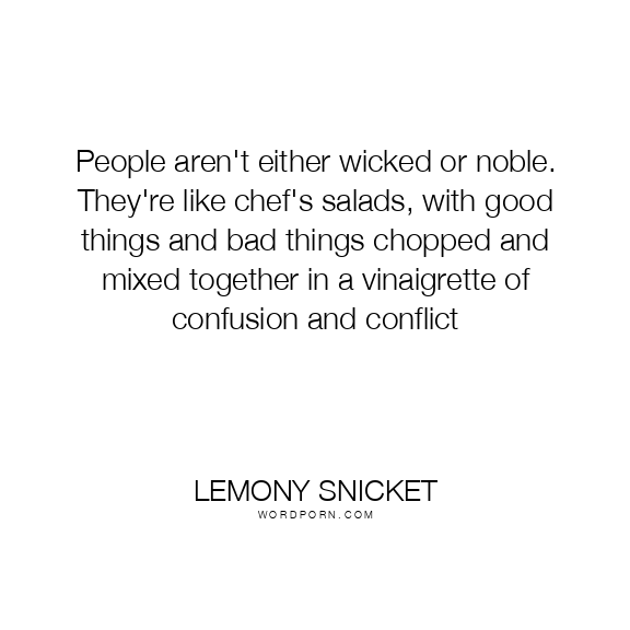 People aren't either wicked or noble. They're like chef's salads, with good things and bad things chopped and mixed together in a vinaigrette of confusion and conflict