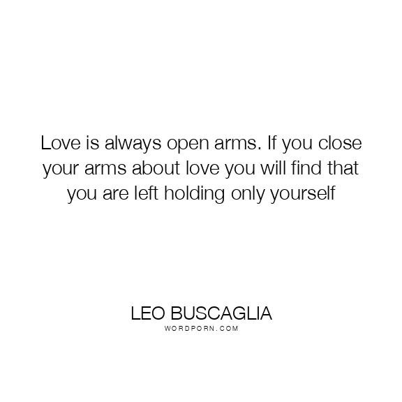 Love is always open arms. If you close your arms about love you will find that you are left holding only yourself