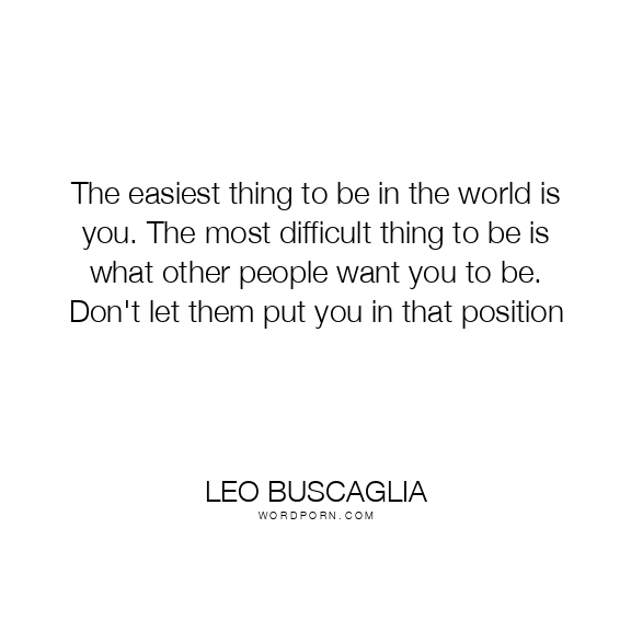 The easiest thing to be in the world is you. The most difficult thing to be is what other people want you to be. Don't let them put you in that position