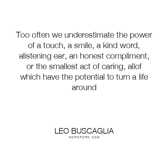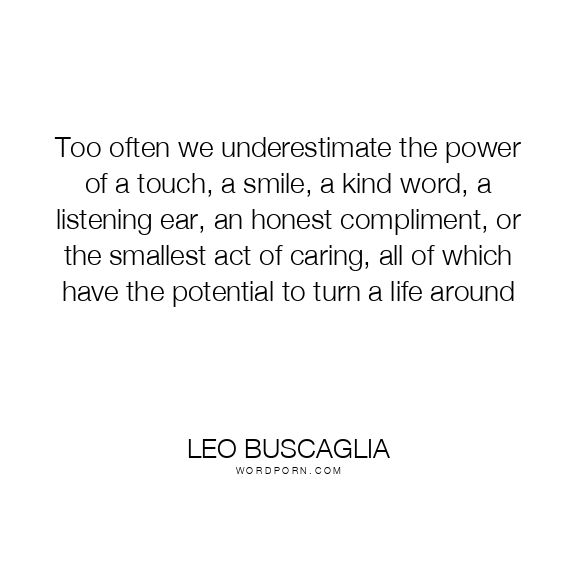 Too often we underestimate the power of a touch, a smile, a kind word, a listening ear, an honest compliment, or the smallest act of caring, all of which have the potential to turn a life around