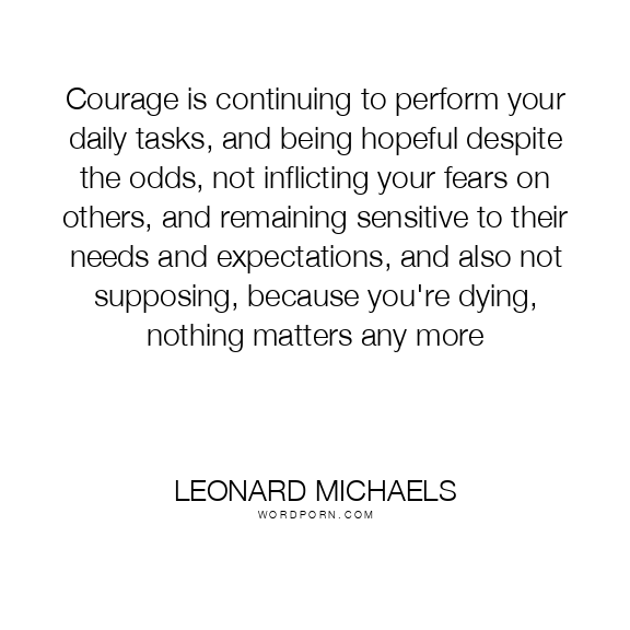 Courage is continuing to perform your daily tasks, and being hopeful despite the odds, not inflicting your fears on others, and remaining sensitive to their needs and expectations, and also not supposing, because you're dying, nothing matters any more