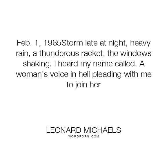 Feb. 1, 1965Storm late at night, heavy rain, a thunderous racket, the windows shaking. I heard my name called. A woman’s voice in hell pleading with me to join her