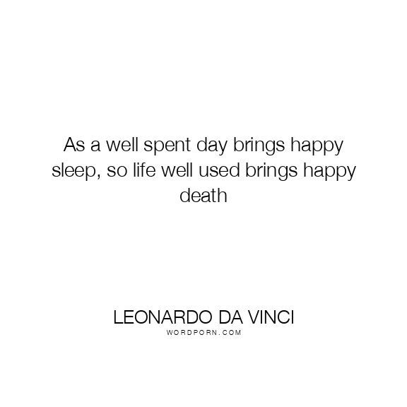 As a well spent day brings happy sleep, so life well used brings happy death