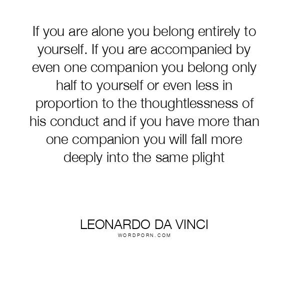 If you are alone you belong entirely to yourself. If you are accompanied by even one companion you belong only half to yourself or even less in proportion to the thoughtlessness of his conduct and if you have more than one companion you will fall more deeply into the same plight