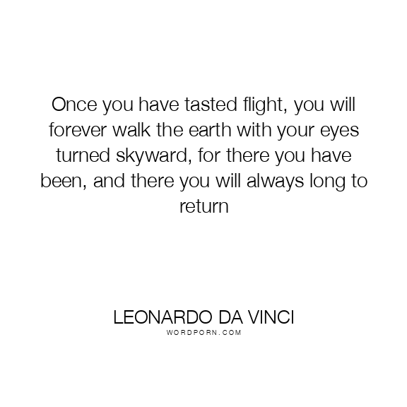 Once you have tasted flight, you will forever walk the earth with your eyes turned skyward, for there you have been, and there you will always long to return