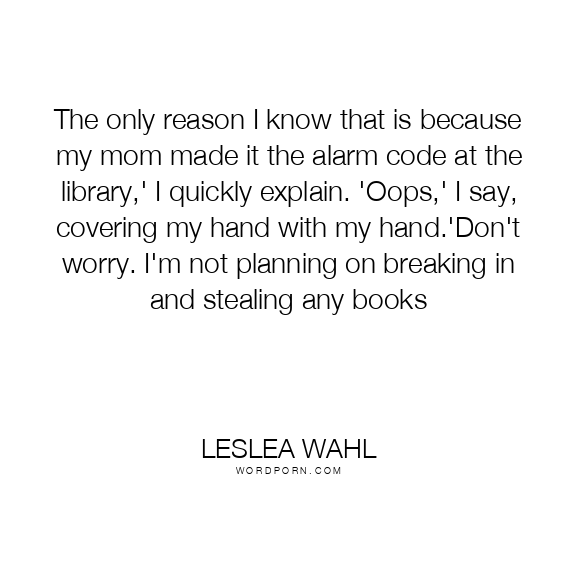 The only reason I know that is because my mom made it the alarm code at the library,' I quickly explain. 'Oops,' I say, covering my hand with my hand.'Don't worry. I'm not planning on breaking in and stealing any books