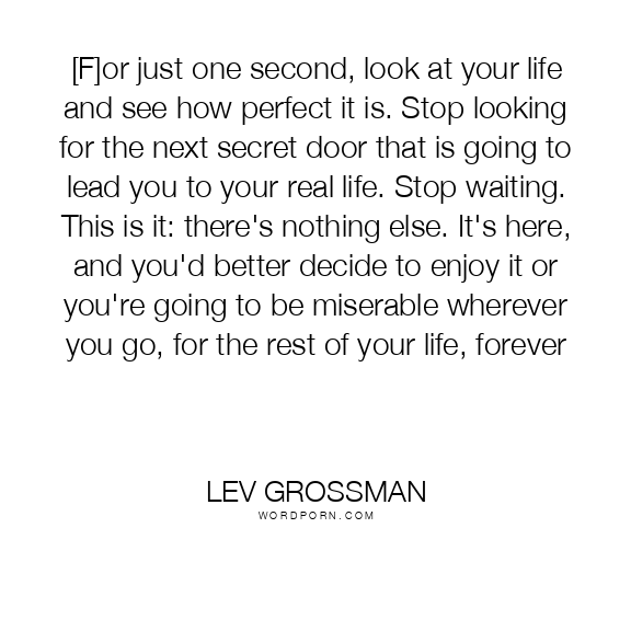 [F]or just one second, look at your life and see how perfect it is. Stop looking for the next secret door that is going to lead you to your real life. Stop waiting. This is it: there's nothing else. It's here, and you'd better decide to enjoy it or you're going to be miserable wherever you go, for the rest of your life, forever