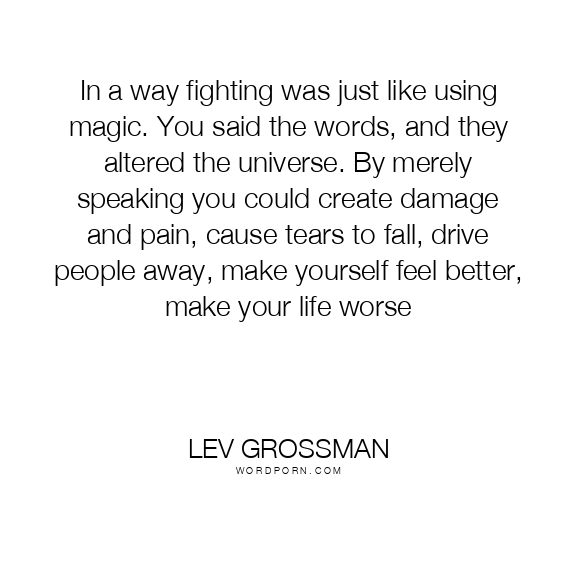 In a way fighting was just like using magic. You said the words, and they altered the universe. By merely speaking you could create damage and pain, cause tears to fall, drive people away, make yourself feel better, make your life worse