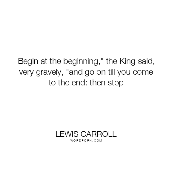 Begin at the beginning," the King said, very gravely, "and go on till you come to the end: then stop