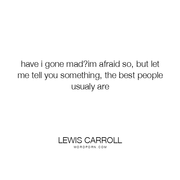 Lewis Carroll quote. have i gone mad?im afraid so, but let me tell you something, the best people usualy are