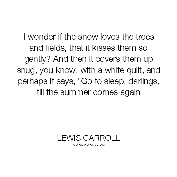Lewis Carroll quote. I wonder if the snow loves the trees and fields, that it kisses them so gently? And then it covers them up snug, you know, with a white quilt; and perhaps it says,