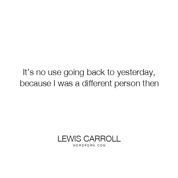 Lewis Carroll quote. It’s no use going back to yesterday, because I was a different person then