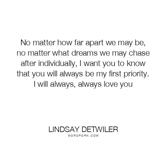 No matter how far apart we may be, no matter what dreams we may chase after individually, I want you to know that you will always be my first priority. I will always, always love you