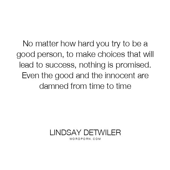 No matter how hard you try to be a good person, to make choices that will lead to success, nothing is promised. Even the good and the innocent are damned from time to time