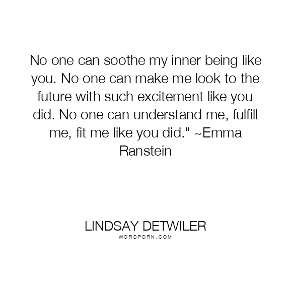 No one can soothe my inner being like you. No one can make me look to the future with such excitement like you did. No one can understand me, fulfill me, fit me like you did." ~Emma Ranstein