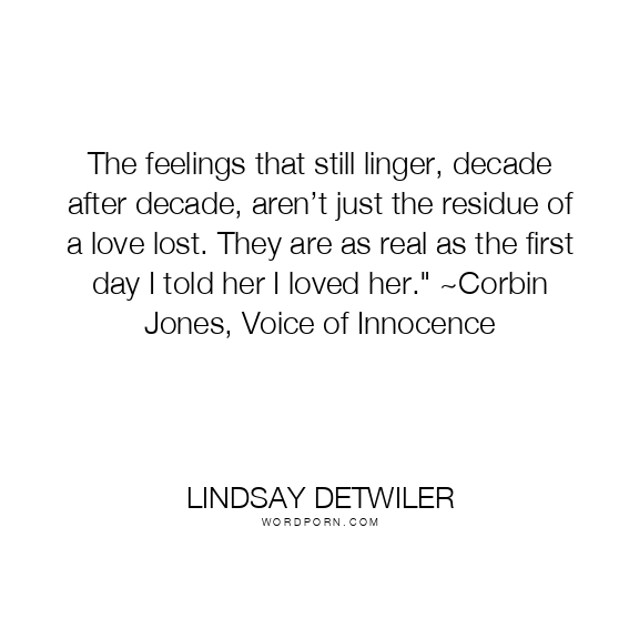 The feelings that still linger, decade after decade, aren’t just the residue of a love lost. They are as real as the first day I told her I loved her." ~Corbin Jones, Voice of Innocence