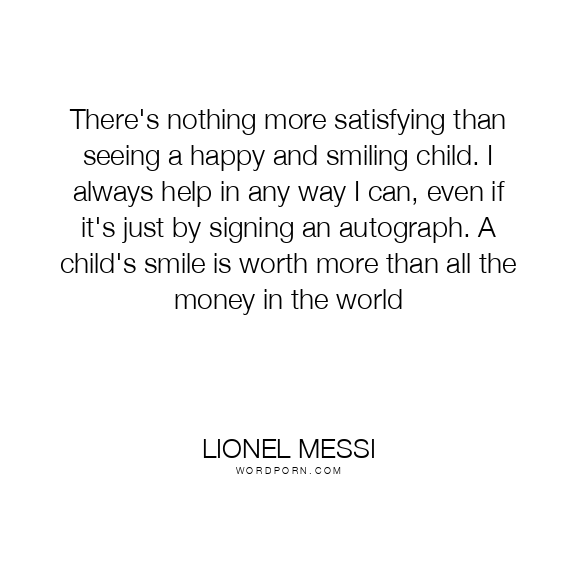 There's nothing more satisfying than seeing a happy and smiling child. I always help in any way I can, even if it's just by signing an autograph. A child's smile is worth more than all the money in the world