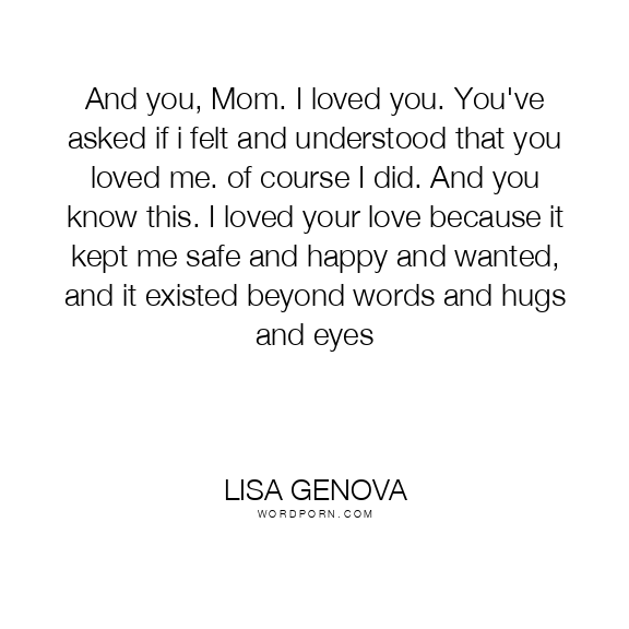And you, Mom. I loved you. You've asked if i felt and understood that you loved me. of course I did. And you know this. I loved your love because it kept me safe and happy and wanted, and it existed beyond words and hugs and eyes