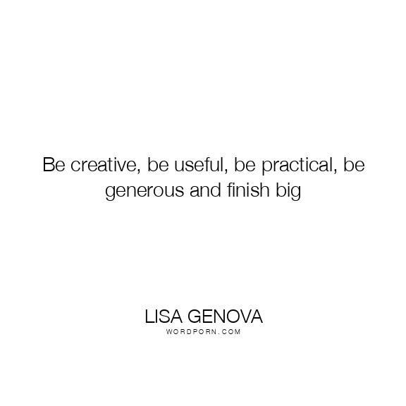Be creative, be useful, be practical, be generous and finish big