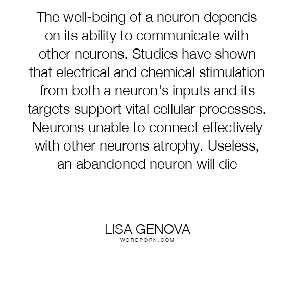 The well-being of a neuron depends on its ability to communicate with other neurons. Studies have shown that electrical and chemical stimulation from both a neuron's inputs and its targets support vital cellular processes. Neurons unable to connect effectively with other neurons atrophy. Useless, an abandoned neuron will die