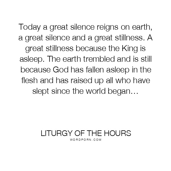 Today a great silence reigns on earth, a great silence and a great stillness. A great stillness because the King is asleep. The earth trembled and is still because God has fallen asleep in the flesh and has raised up all who have slept since the world began…