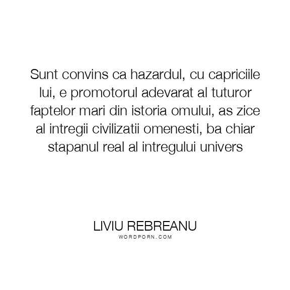 Sunt convins ca hazardul, cu capriciile lui, e promotorul adevarat al tuturor faptelor mari din istoria omului, as zice al intregii civilizatii omenesti, ba chiar stapanul real al intregului univers