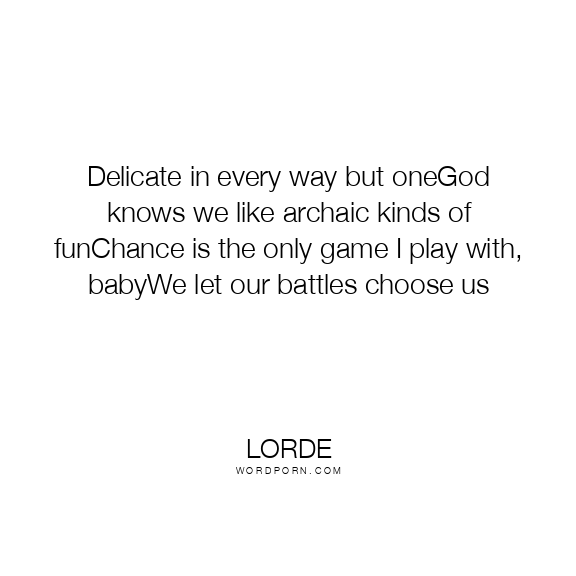 Delicate in every way but oneGod knows we like archaic kinds of funChance is the only game I play with, babyWe let our battles choose us