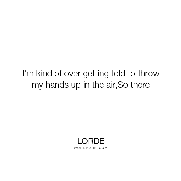 I'm kind of over getting told to throw my hands up in the air,So there