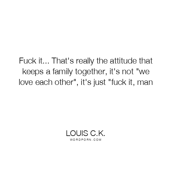 Fuck it... That's really the attitude that keeps a family together, it's not "we love each other", it's just "fuck it, man