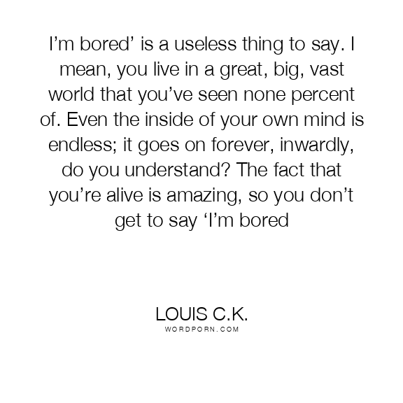 I’m bored’ is a useless thing to say. I mean, you live in a great, big, vast world that you’ve seen none percent of. Even the inside of your own mind is endless; it goes on forever, inwardly, do you understand? The fact that you’re alive is amazing, so you don’t get to say ‘I’m bored