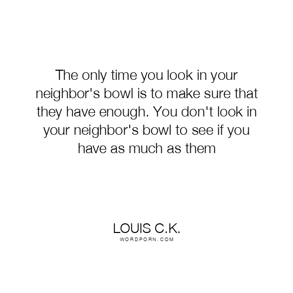 The only time you look in your neighbor's bowl is to make sure that they have enough. You don't look in your neighbor's bowl to see if you have as much as them