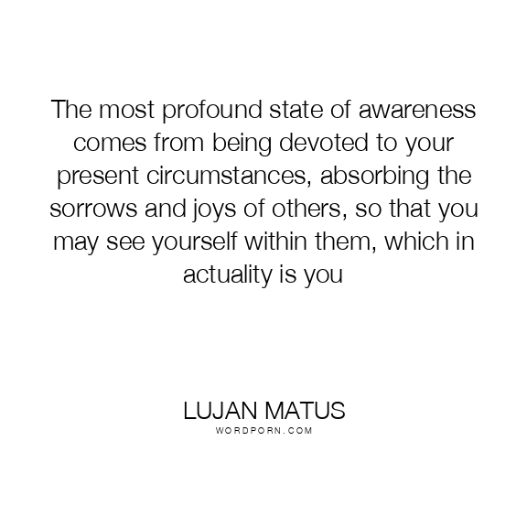The most profound state of awareness comes from being devoted to your present circumstances, absorbing the sorrows and joys of others, so that you may see yourself within them, which in actuality is you