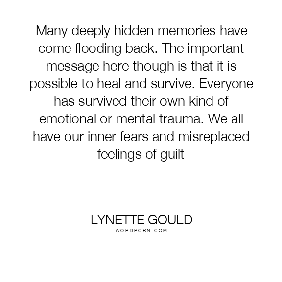 Many deeply hidden memories have come flooding back. The important message here though is that it is possible to heal and survive. Everyone has survived their own kind of emotional or mental trauma. We all have our inner fears and misreplaced feelings of guilt