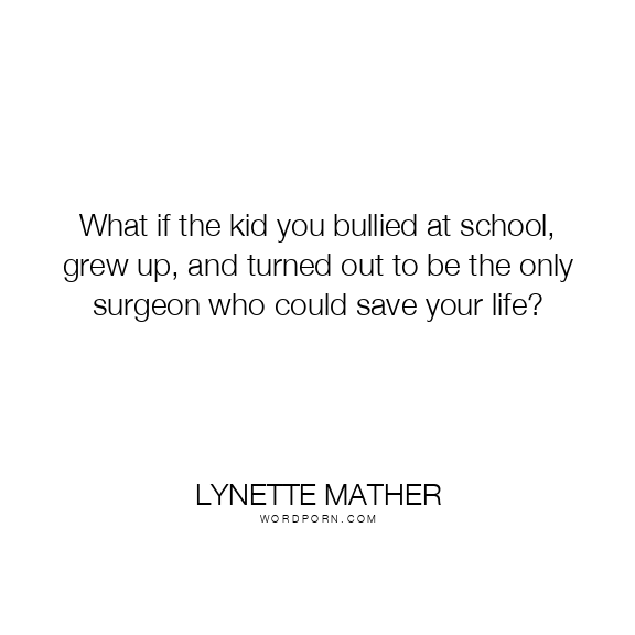 Copy Image What if the kid you bullied at school, grew up, and turned out to be the only surgeon who could save your life? Moms Typewriter A A SAVE THIS IMAGE