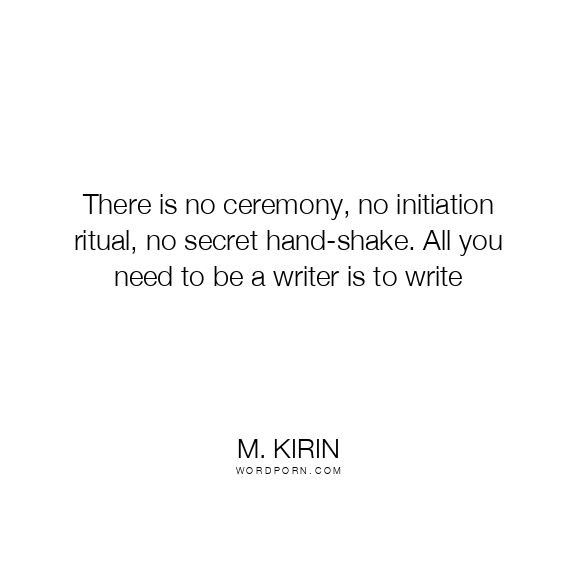 There is no ceremony, no initiation ritual, no secret hand-shake. All you need to be a writer is to write