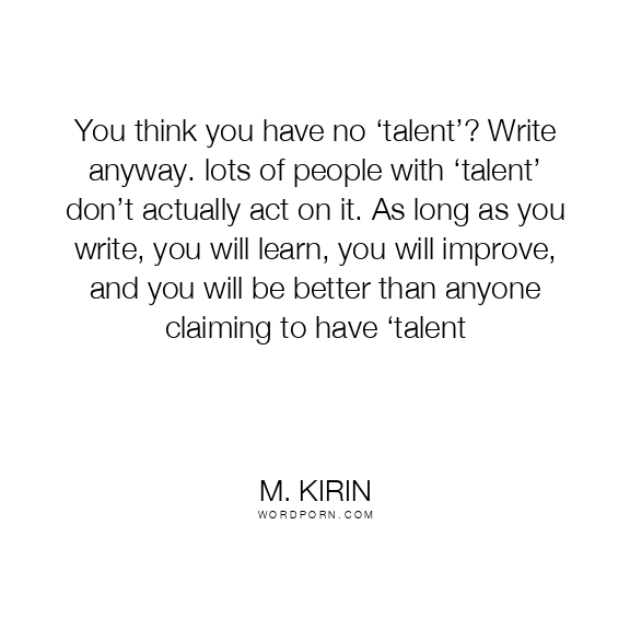 You think you have no ‘talent’? Write anyway. lots of people with ‘talent’ don’t actually act on it. As long as you write, you will learn, you will improve, and you will be better than anyone claiming to have ‘talent