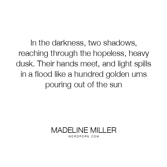 In the darkness, two shadows, reaching through the hopeless, heavy dusk. Their hands meet, and light spills in a flood like a hundred golden urns pouring out of the sun