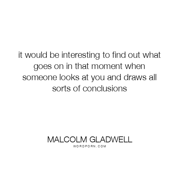 it would be interesting to find out what goes on in that moment when someone looks at you and draws all sorts of conclusions
