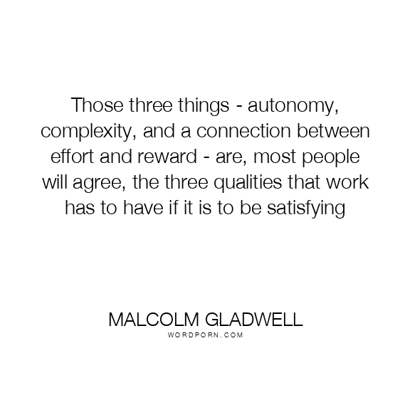 Those three things - autonomy, complexity, and a connection between effort and reward - are, most people will agree, the three qualities that work has to have if it is to be satisfying